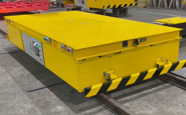 耐熱・耐久性などに優れたOSK製のレードル用、スクラップ用の台車が、過酷な環境下での作業を支えております。